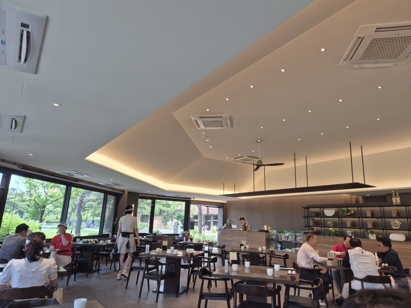 넓은 창가 자리엔 라운딩 후 피곤한 표정을 감춘 골퍼들이 가득.