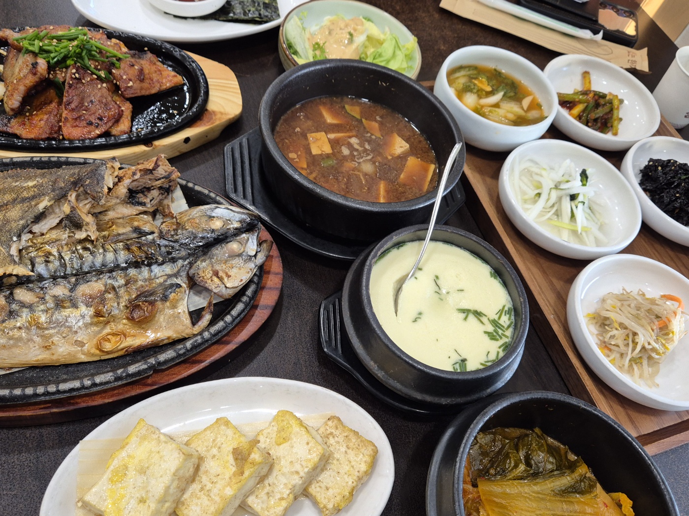 라운드 후 허기진 속을 뜨끈한 된장찌개, 고등어구이, 두부부침, 그리고 제육볶음이 순식간에 녹여줍니다. 필드보다 이 테이블이 더 뜨겁습니다. 골프보다 밥이 메인 아닐까, 잠시 혼란이 왔던 시간.