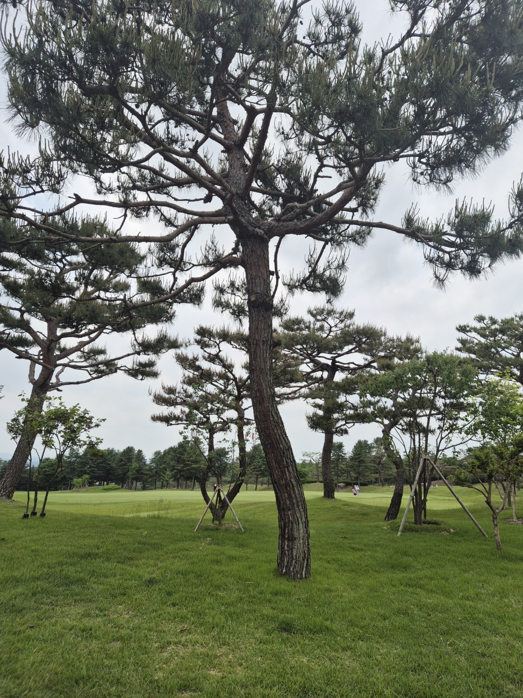 📍 소나무 뷰와 함께 티샷 준비 완료